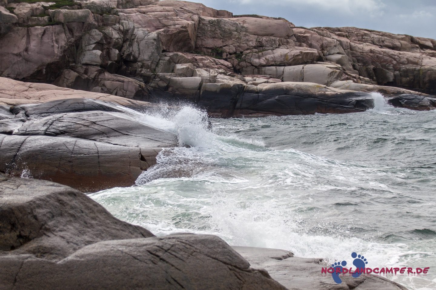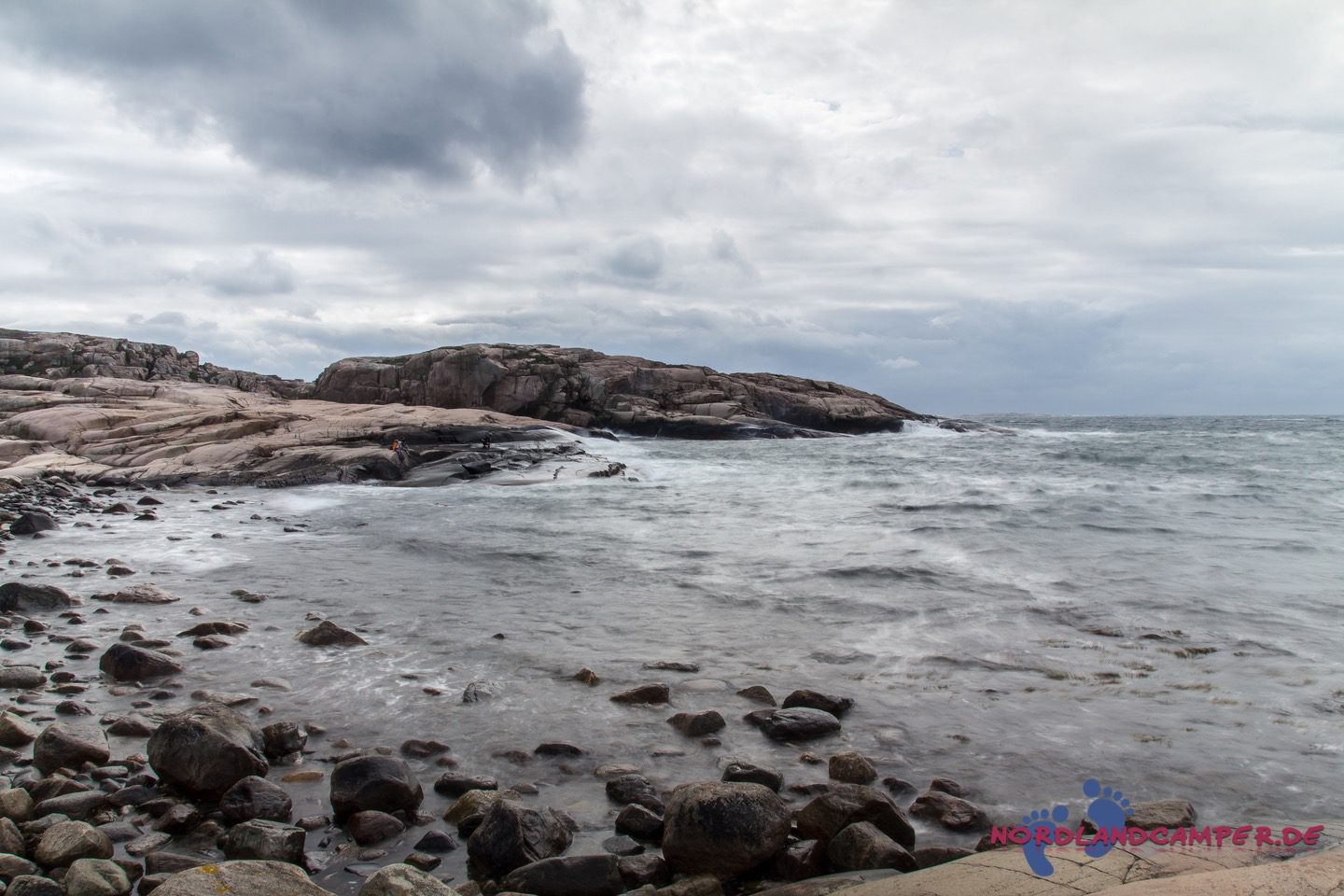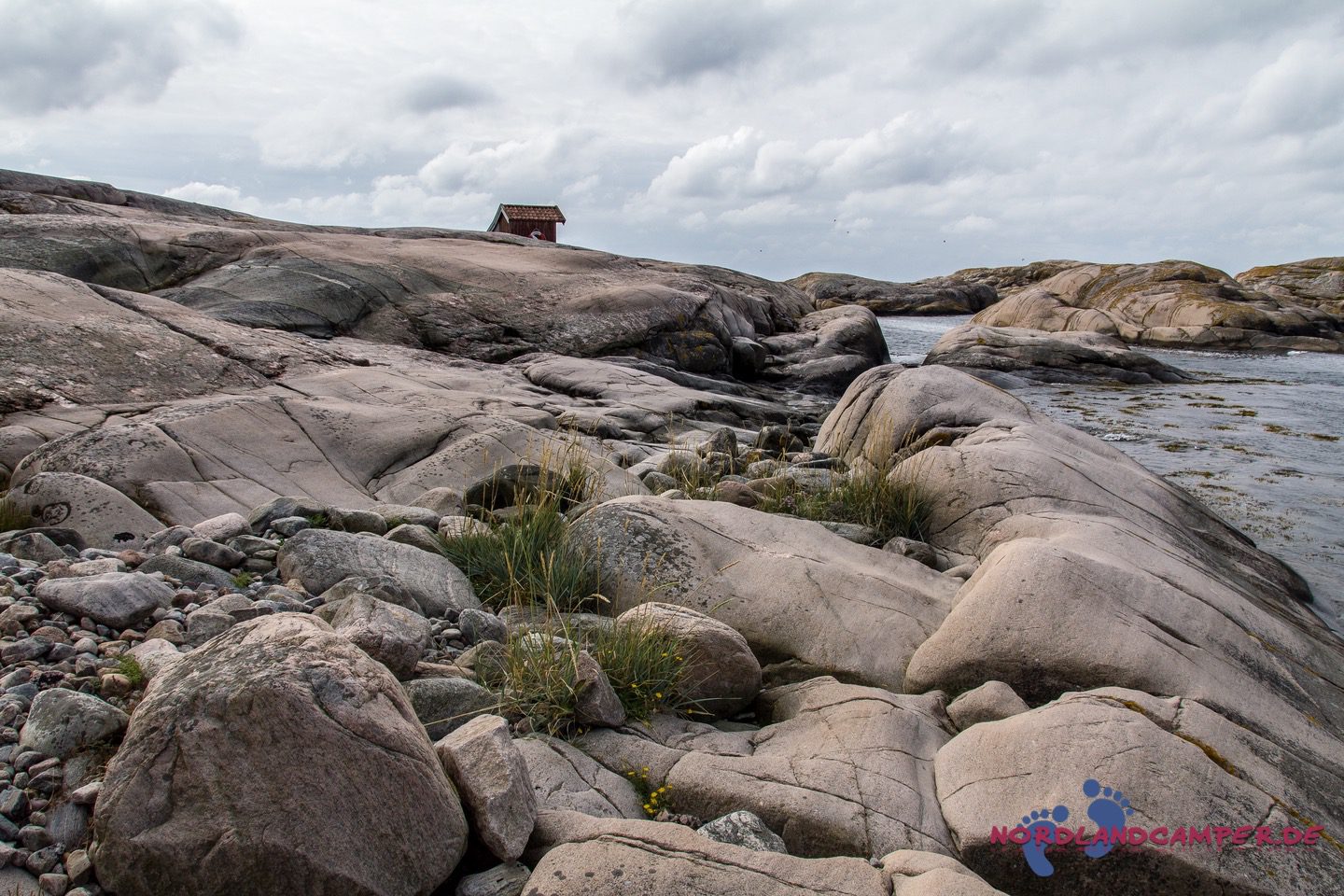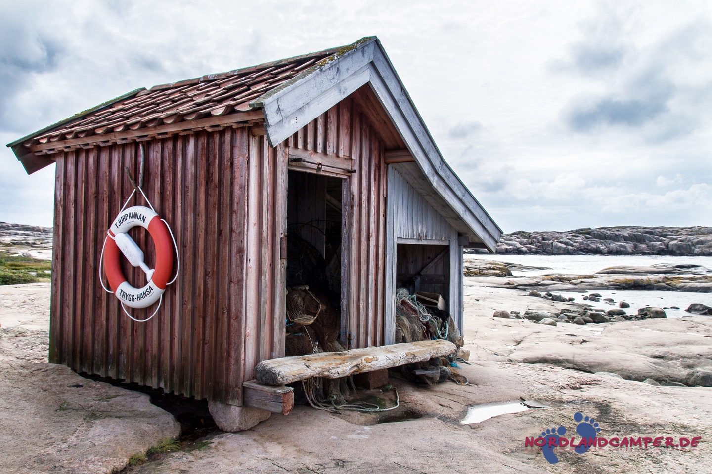 Einsam an der Küste steht ein baufälliger hölzerner Unterstand, der mit alten Netzen bis zum Rand gefüllt ist. Er gibt ein tolles Fotomotiv ab. Spritzer der Gischt klatschen uns ins Gesicht und wir inhalieren tief die salzhaltige klare Luft. die einem den Kopf wieder freibläst und Sorgen vergessen lässt. Die Schären sind einfach zu begehen, die Sicht ist weit. Wir könnten ewig über diese herrlichen Steinformationen wandern. Leider wird das Wetter immer übler und wir müssen aufgeben. Nach etwa zwei Stunden kommen wir wieder am Auto an und rollen zurück zum Campingplatz, wo uns heißer Tee und Kekse sehnsüchtig erwarten. Ein schöner Tag klingt gemütlich aus.