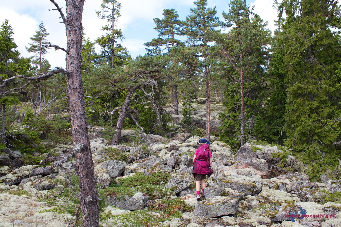 Den Rückweg kann man entweder wieder so wählen wie den Hinweg oder von der Grillstelle aus auf einem Forstweg in nordwestlicher Richtung bogenförmig durch den Wald den Rundweg schließen. Hierbei erreicht man die Fahrstraße ca. einen Kilometer vor dem Gästparkering Rotsidan, der man dann bis zum Auto leicht ansteigend folgt. Für den gesamten Rundweg haben wir etwa 2 Stunden gebraucht, mit Foto- und Grillpause entsprechend länger.
