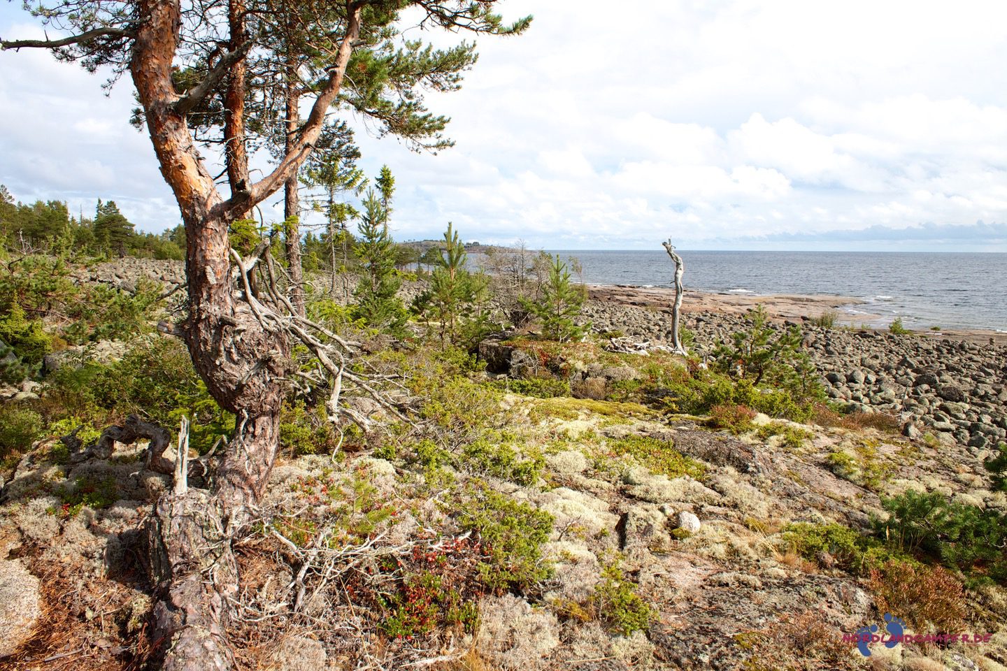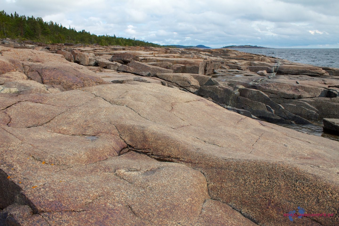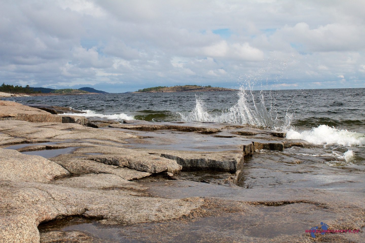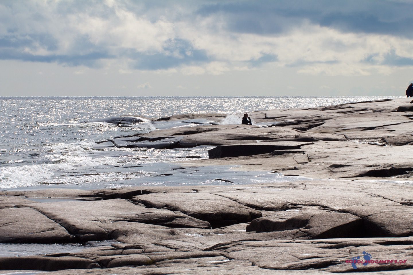 Die hübschen flachen rotbraunen Steine bieten tolle Fotomotive. Bei schönem Wetter kann man sicher schön baden. Einen Küstenabschnitt grober Steine kann man etwas oberhalb über einen Pfad am Waldrand umgehen. Wandert man die Küste etwas weiter, erreicht man eine Grillstelle die zur Brotzeit einläd. Grillmaterial muss aber mitgebracht werden.