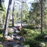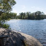 Vom Strand aus, führen mehrere Wanderwege in die umgebenden Schären. Wir haben uns in nördlicher Richtung aufgemacht und sind der guten Beschilderung „Grottstigen“ gefolgt. Der Pfad führte zunächst über einen geschotterten Weg in den Wald, dann weiter als Pfad durch eine locker bewaldete Schärenlandschaft bergauf und bergab bis an die Küste. Teilweise waren Leitern und andere kleine Hindernisse zu überwinden und eine kurze Höhle zu durchqueren. Am Meer gibt es dann eine weitere kleine Höhle für die Kinder zu besichtigen, die nur über die Steine oberhalb der Brandung zu erreichen ist. Gegen Abschluss der etwa zweistündigen Wanderung erreicht man einen See, an dem mehrere Bade- und Grillplätze vorhanden sind. Bei sonnigem Wetter ein Top-Tip als Tagesausflug. Die Tour endet dort wo sie begonnen hat, nämlich am Smitingen Havsbad. Nehmt auf jeden Fall genug für eine zünftige Brotzeit oder etwas zum grillen mit – es lohnt sich!