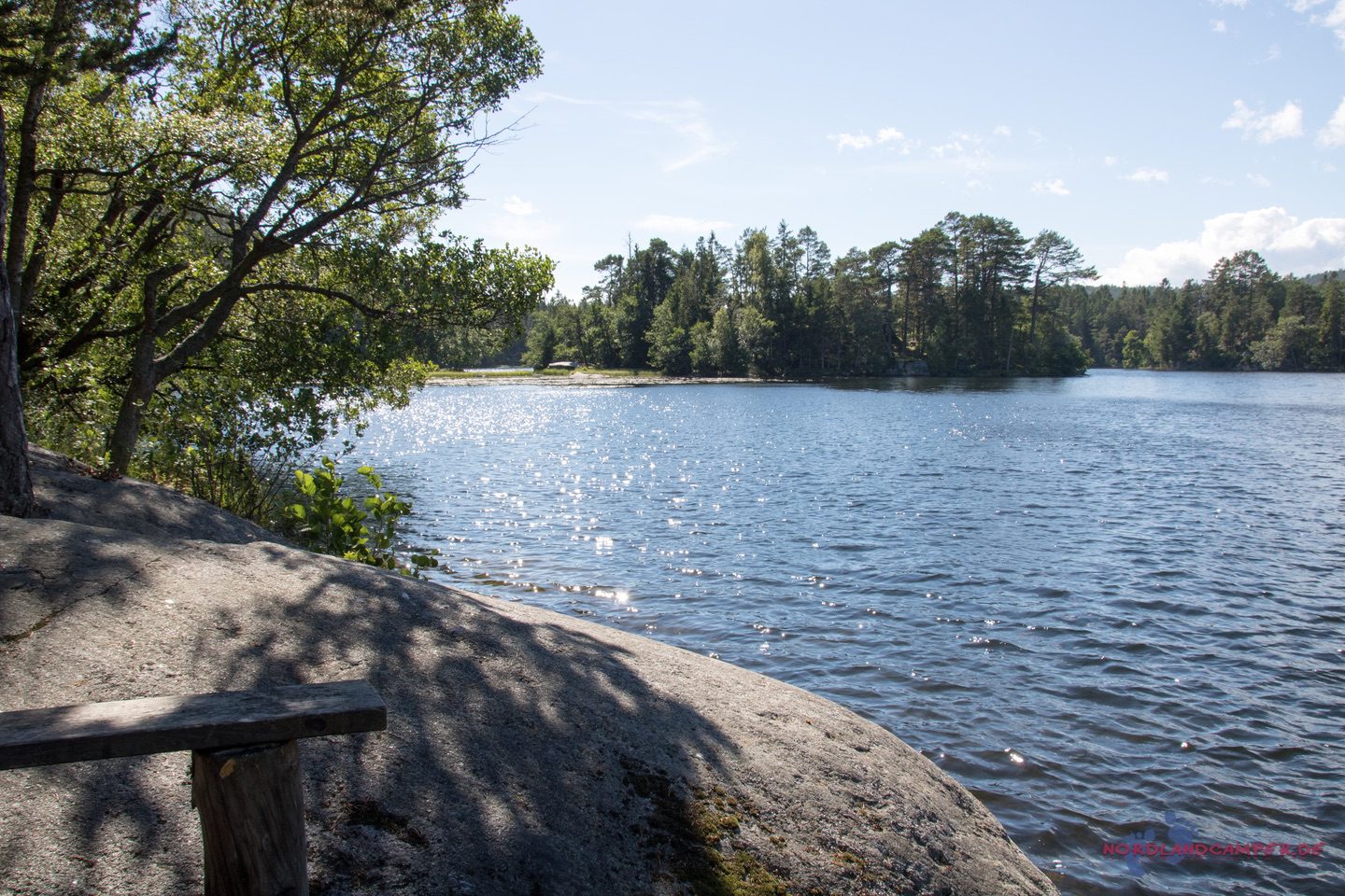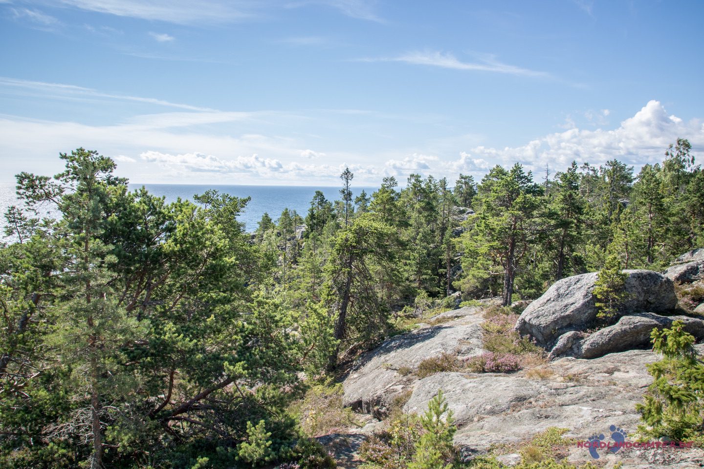 Vom Strand aus, führen mehrere Wanderwege in die umgebenden Schären. Wir haben uns in nördlicher Richtung aufgemacht und sind der guten Beschilderung „Grottstigen“ gefolgt. Der Pfad führte zunächst über einen geschotterten Weg in den Wald, dann weiter als Pfad durch eine locker bewaldete Schärenlandschaft bergauf und bergab bis an die Küste. Teilweise waren Leitern und andere kleine Hindernisse zu überwinden und eine kurze Höhle zu durchqueren. Am Meer gibt es dann eine weitere kleine Höhle für die Kinder zu besichtigen, die nur über die Steine oberhalb der Brandung zu erreichen ist. Gegen Abschluss der etwa zweistündigen Wanderung erreicht man einen See, an dem mehrere Bade- und Grillplätze vorhanden sind. Bei sonnigem Wetter ein Top-Tip als Tagesausflug. Die Tour endet dort wo sie begonnen hat, nämlich am Smitingen Havsbad. Nehmt auf jeden Fall genug für eine zünftige Brotzeit oder etwas zum grillen mit – es lohnt sich!