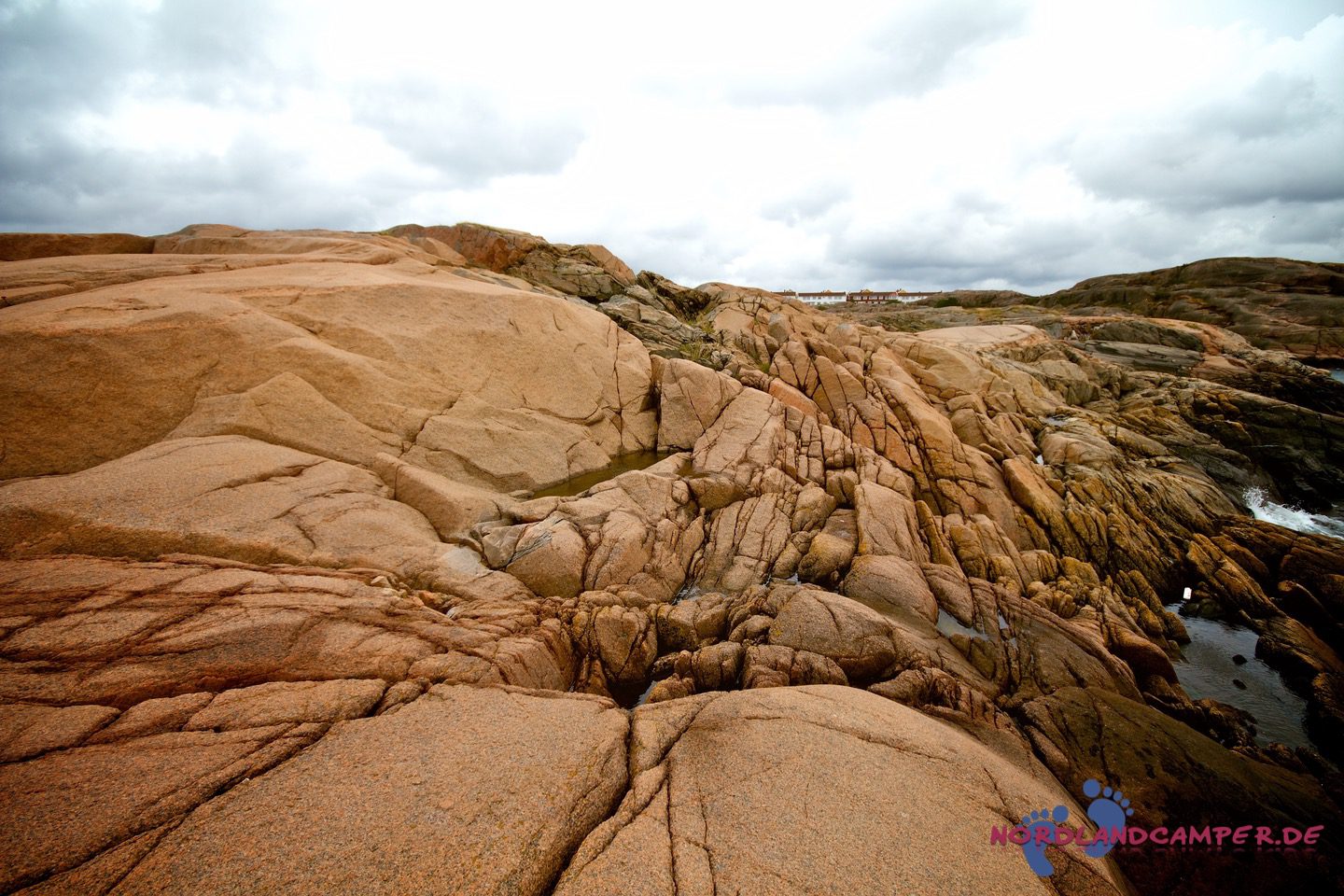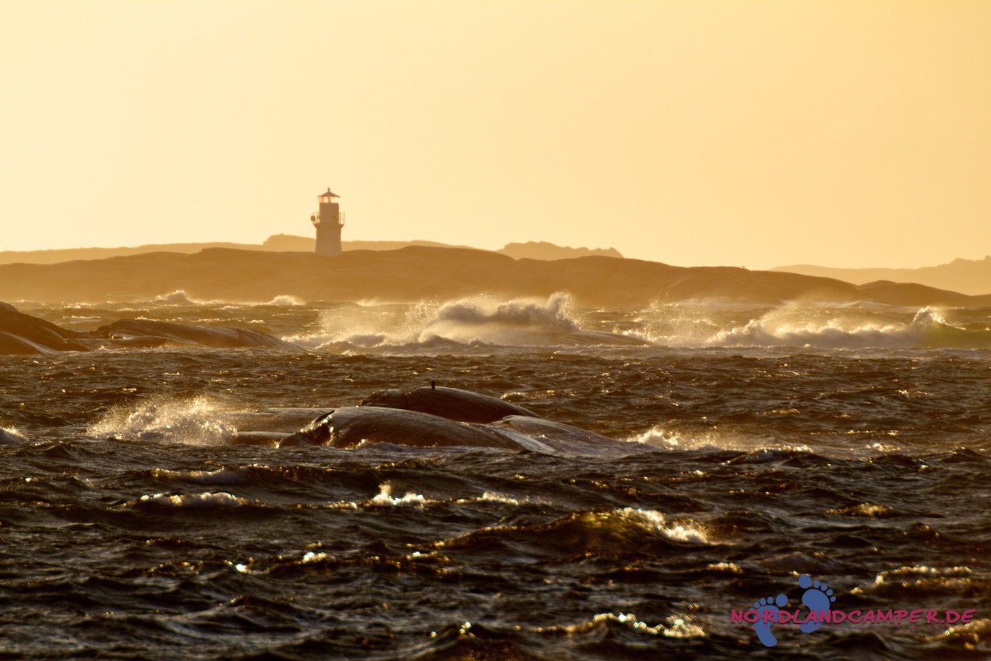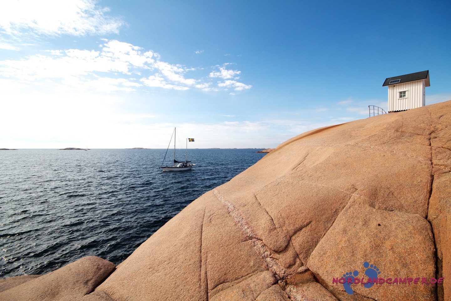 Hier starten die für Bohuslän so typischen, von Wind, Wetter und Gletschereis abgeschliffenen Schärenfelsen, die im Licht der Abendsonne herrlich rot-golden leuchten. Besonders eindrucksvoll ist die Wanderung an windigen Tagen, wenn der Sturm das Meer aufpeitscht und große Wellen an die Schären anbranden. Die Mitnahme von regenfester Kleidung und eines sturmtauglichen Regenschirms ist bei zweifelhaftem Wetter sehr zu empfehlen, da es unterwegs keine Möglichkeit zum Unterstand gibt und ein Regenguss auf den Schären sehr ungemütlich werden kann (aus eigener Erfahrung…). Über die Schärenfelsen erreicht man unkompliziert ein kleines weißes Häuschen in aussichtsreicher Umgebung, das wunderbar als Fotomotiv aus allen Himmelsrichtungen herhalten kann.
