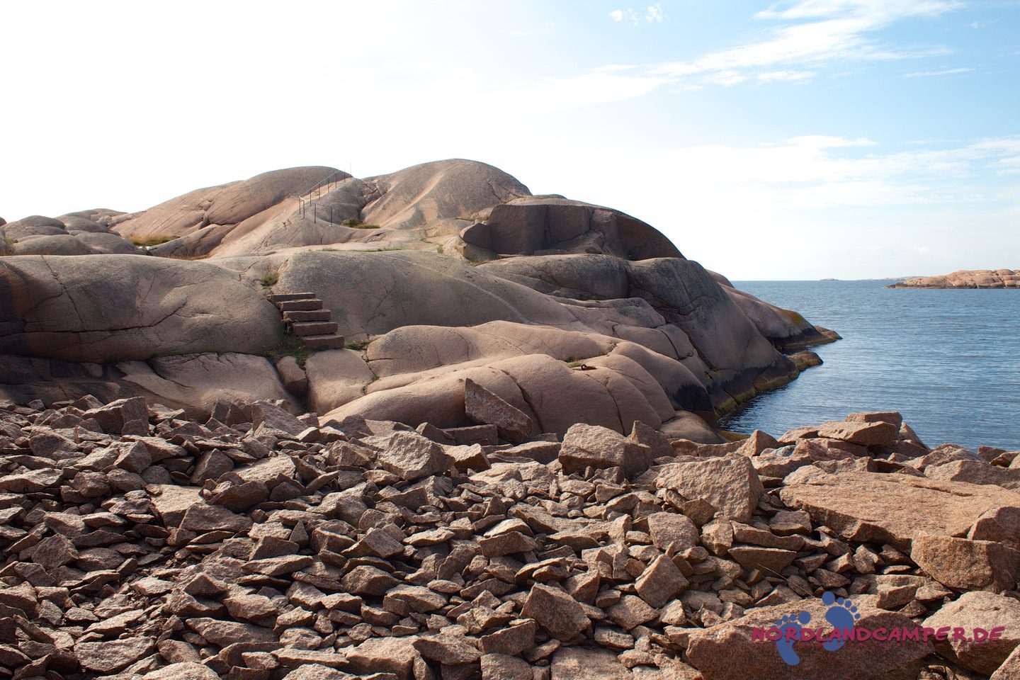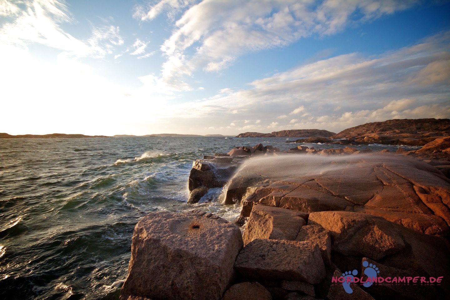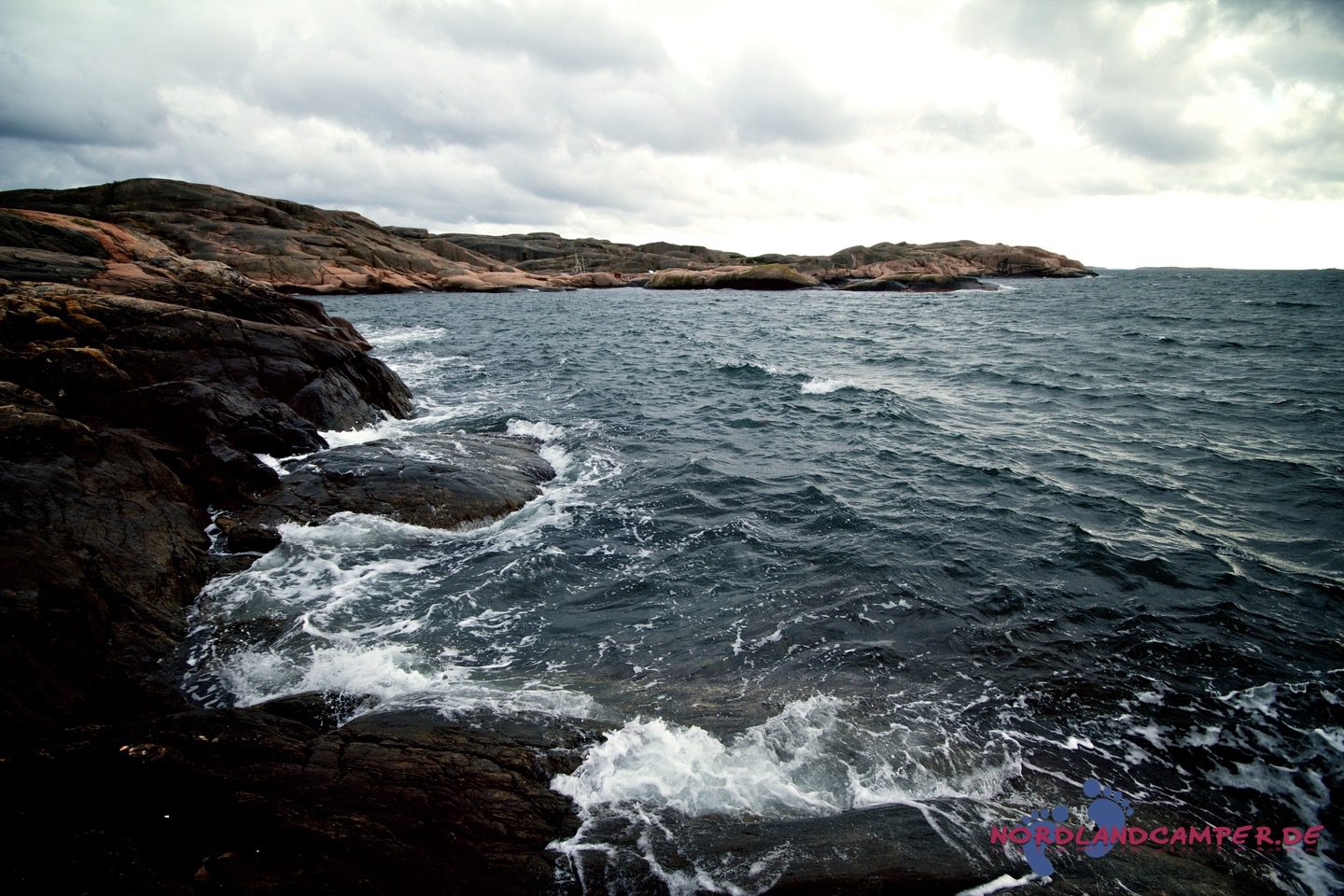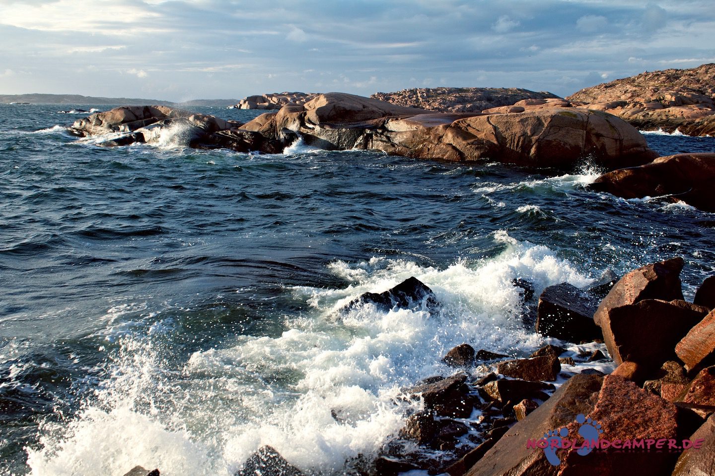 Hier starten die für Bohuslän so typischen, von Wind, Wetter und Gletschereis abgeschliffenen Schärenfelsen, die im Licht der Abendsonne herrlich rot-golden leuchten. Besonders eindrucksvoll ist die Wanderung an windigen Tagen, wenn der Sturm das Meer aufpeitscht und große Wellen an die Schären anbranden. Die Mitnahme von regenfester Kleidung und eines sturmtauglichen Regenschirms ist bei zweifelhaftem Wetter sehr zu empfehlen, da es unterwegs keine Möglichkeit zum Unterstand gibt und ein Regenguss auf den Schären sehr ungemütlich werden kann (aus eigener Erfahrung…). Über die Schärenfelsen erreicht man unkompliziert ein kleines weißes Häuschen in aussichtsreicher Umgebung, das wunderbar als Fotomotiv aus allen Himmelsrichtungen herhalten kann.