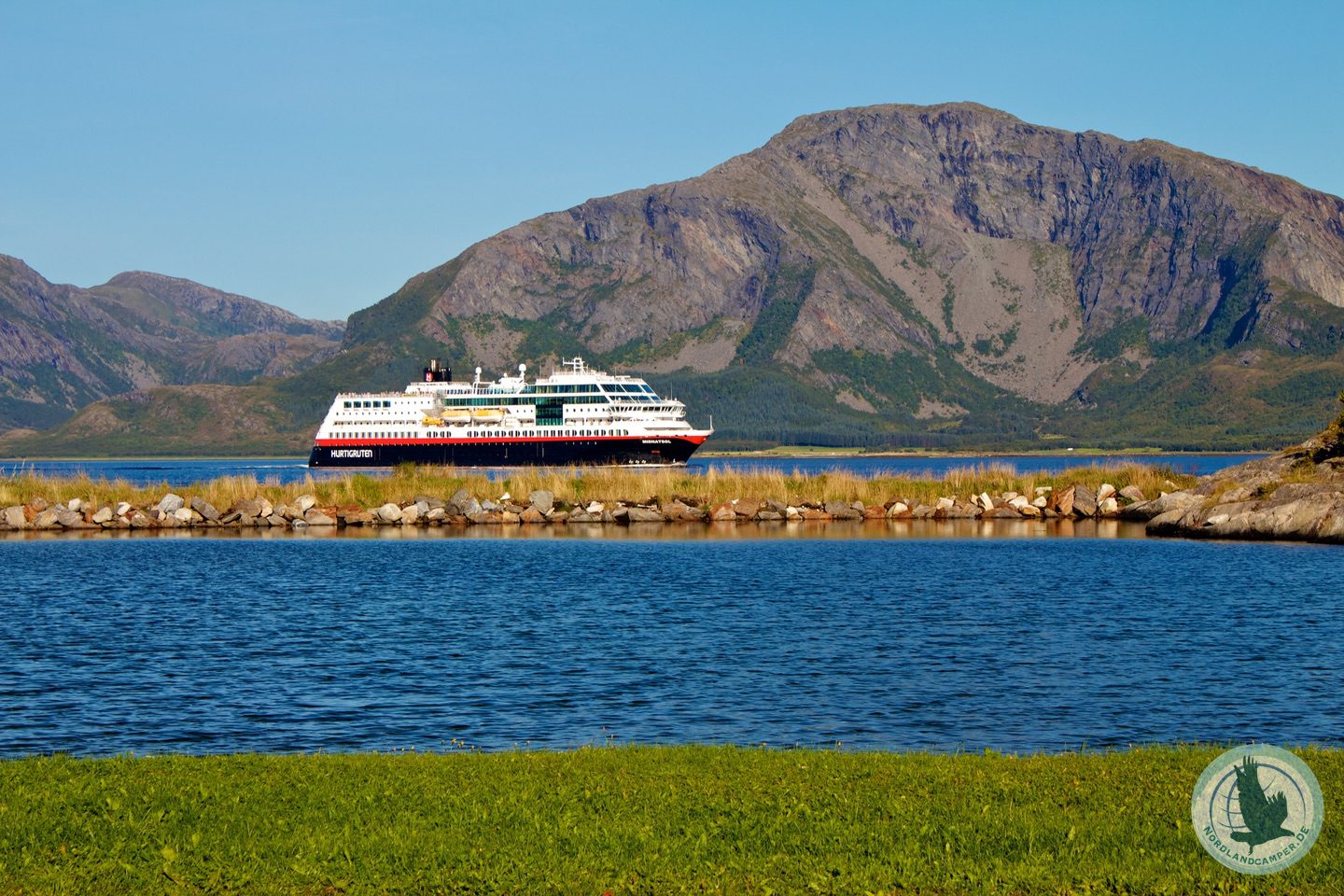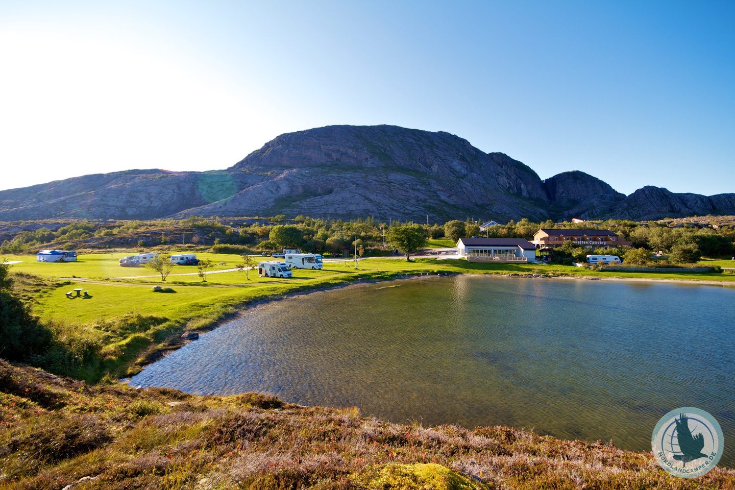 Der Campingplatz liegt direkt am Atlantik, nur von einem kleinen Hügel getrennt. Von diesem hat man eine herrliche Aussicht – vor allem abends, wenn die Schiffe der Hurtigrute hier im Sonnenuntergang vorbeifahren. In einem kleinen vom Meer abgeschotteten See kann man schön baden – das Wasser ist aber saukalt! Der Campingplatz hat sehr saubere Sanitäranlagen, ein Restaurant und das Beste – eine wunderschöne Natur in direkter Umgebung. Ein toller Tipp ist es abends auf den kleinen Hügel, der den Campingplatz vom Atlantik trennt, zu steigen und dem „Alpenglühen“ der umgebenden Berge im Abendlicht zuzusehen, während die großen Schiffe in nächster Nähe vorbeifahren – wir haben den Aufenthalt sehr genossen!