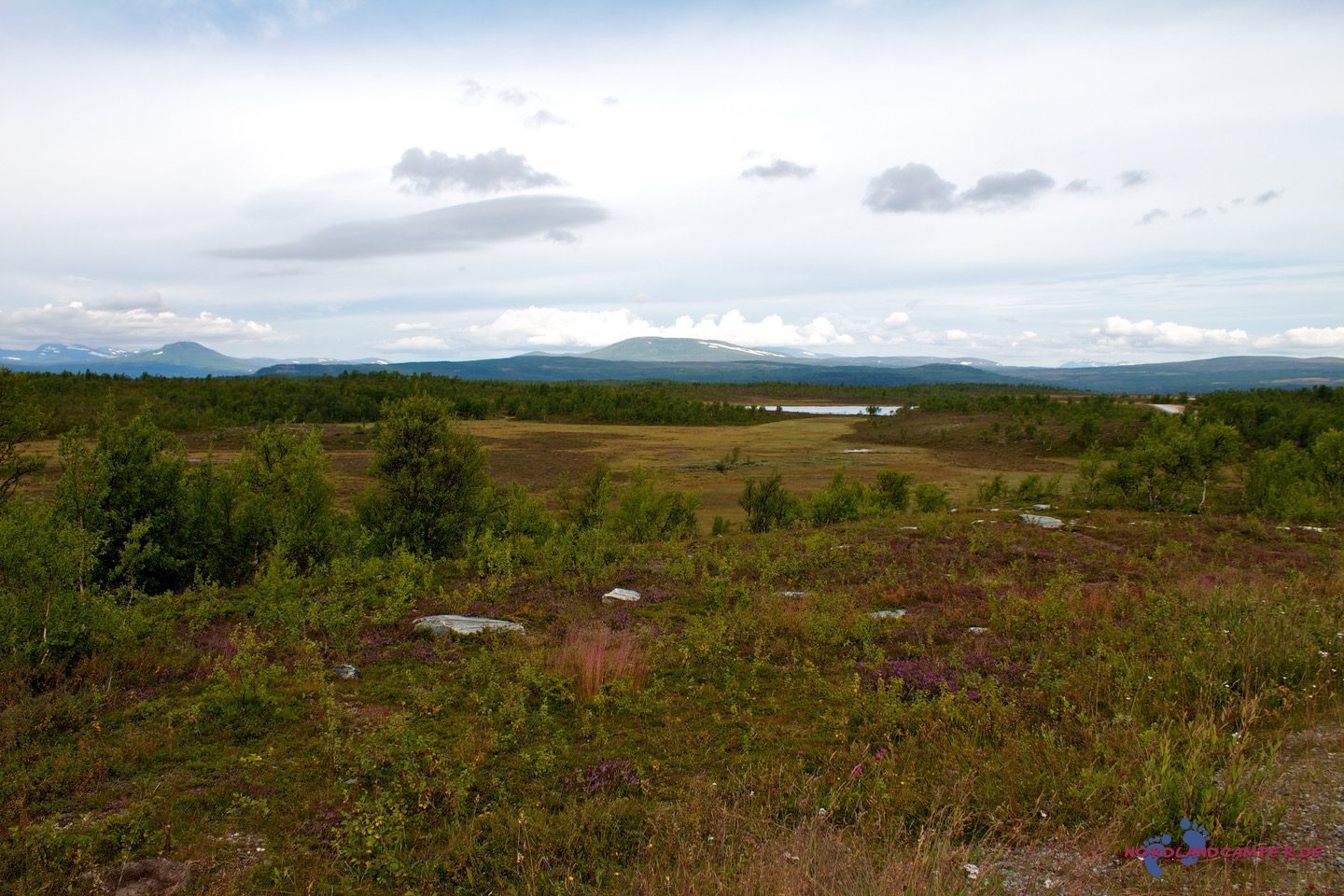 Von Mittådalen sind es noch einige Kilometer Schotterpiste, die durch eine waldige Region, durchbrochen von Mooren, führt. Immer wieder kreuzen Rentiere die Straße (alle mit Halsbändern versehen). Schließlich erreicht man Funäsdalen auf der 84 . Ab hier geht es wieder auf gut ausgebauter Asphaltstraße nach Südosten bis Sveg an der E45.