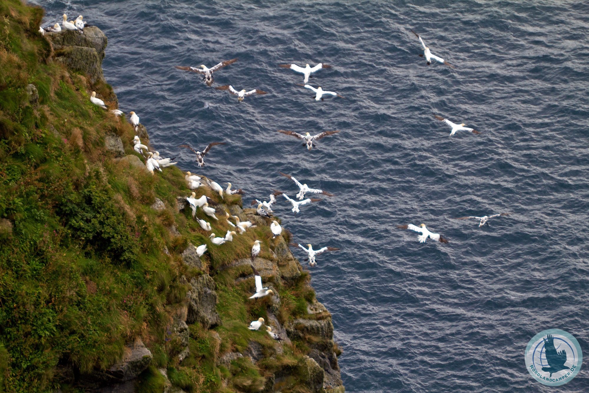 Auch muss man auf die richtige Jahreszeit achten, um die beliebten Papageientaucher aus der Nähe fotografieren zu können. Wir haben leider nur einen einzigen Vogel dieser Art auf den vielen Fotos sichten können und das war eher eine Zufallsaufnahme (wer entdeckt den kleinen schwarzen Vogel auf den Fotos?). Insgesamt ist die Wanderung über die Insel aber ein tolles Erlebnis, das man sich nicht entgehen lassen sollte, wenn man mal in der Gegend ist – wir werden sicherlich nochmal kommen, dann aber auf die richtige Brutzeit achten!