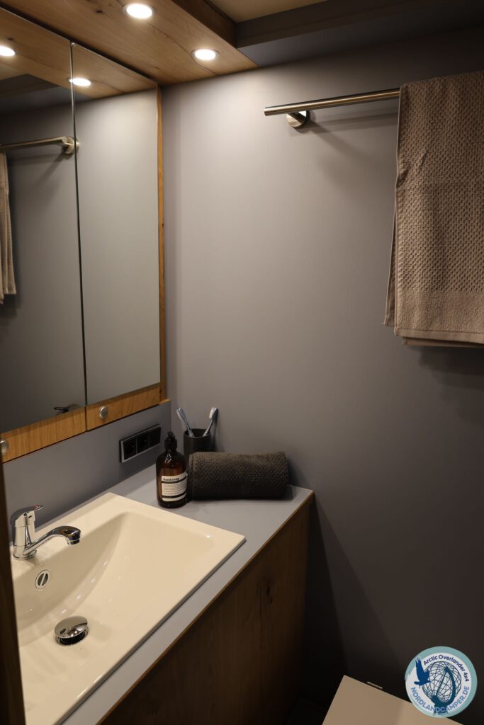 LTE/5G-Router, Rückfahrkamera und Außendusche runden die Ausstattung ab. Du bleibst verbunden, sicher und sauber, selbst fernab der Zivilisation. Diese Technik lässt dich tiefer in Skandinaviens unberührte Landschaften vordringen.