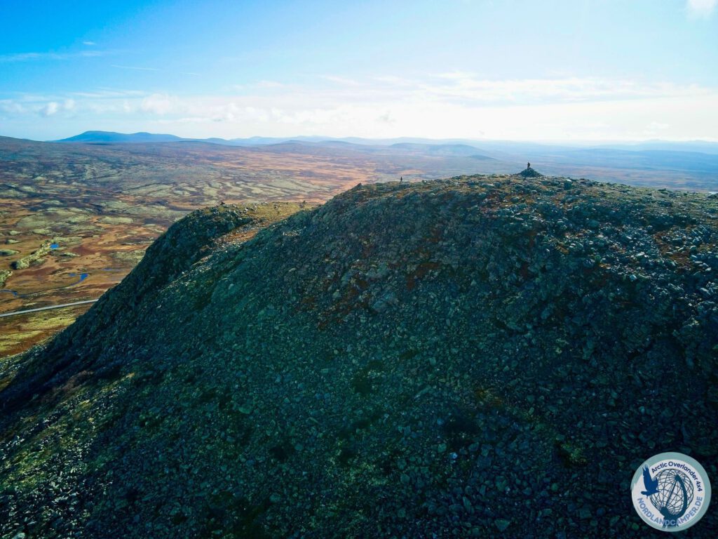 Der Gipfel liegt bei 61.707600, 10.152250 und bietet eine beeindruckende Rundumsicht. Du blickst über die weiten Hochebenen des Rondane, siehst benachbarte Gipfel, flache Täler und – bei klarer Sicht – scheinbar endlose Landschaften.