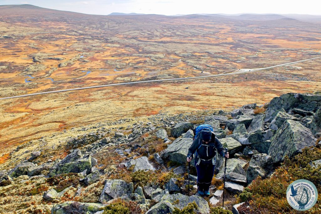 Charakter: Einsame Fjellwanderung, weglos in Gipfelnähe, kraxeln über Steine macht Trittsicherheit zur Pflicht