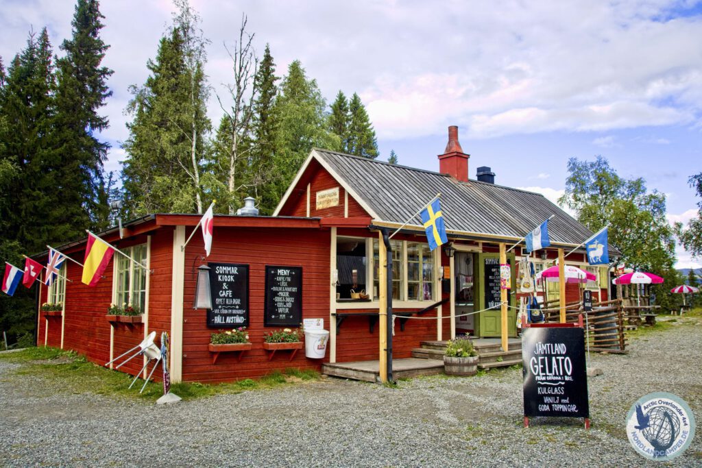 Heute beherbergt das Gebäude einen kleinen Shop und ein Café, das in der Hauptsaison seine Türen öffnet. Hier finden Reisende nicht nur kleine Erinnerungsstücke, sondern auch echte lokale Leckereien. Ein absoluter Klassiker sind die frischen schwedischen Waffeln, die traditionell mit großzügigen Portionen Blaubeermarmelade serviert werden. Nach einer kühlen Wanderung am Wasserfall gibt es kaum einen passenderen Ort, um sich in dem rustikalen Holzhaus bei einer heißen Tasse Kaffee aufzuwärmen.