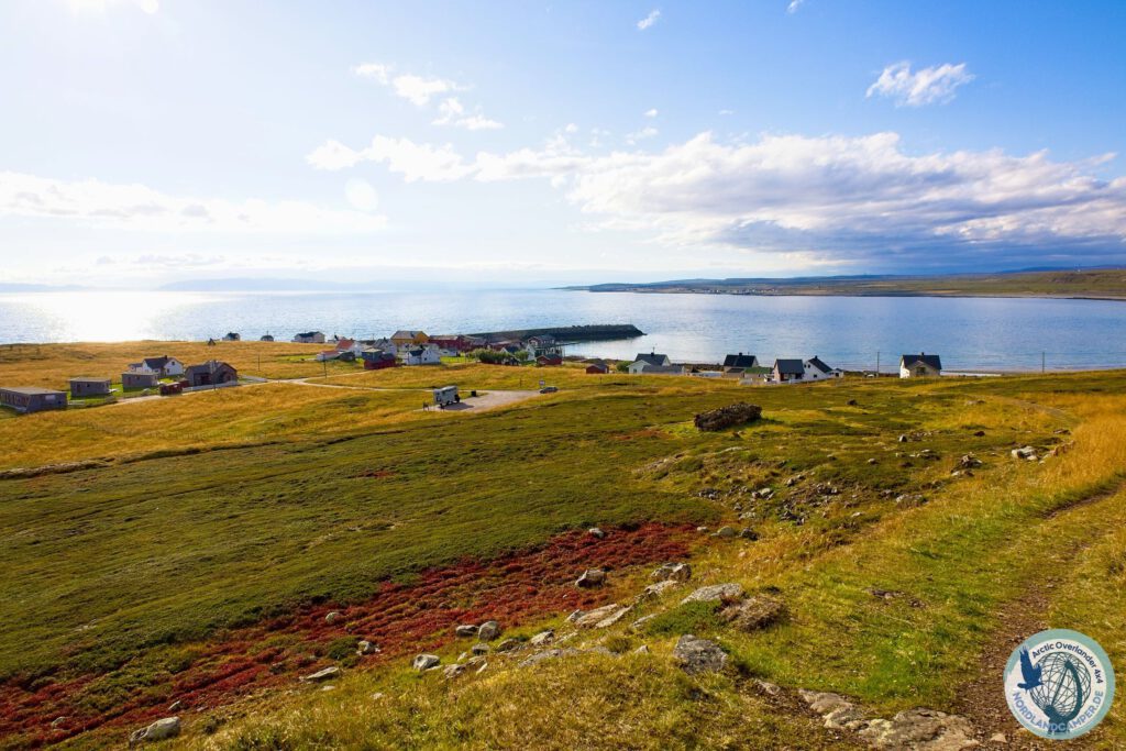 Je weiter Du Dich dem südöstlichen Abschnitt näherst, desto intensiver wird das Gefühl von Weite. Hinter Dir liegt das Dorf, vor Dir öffnen sich Fjord und Barentssee, und die Halbinsel wirkt plötzlich wie ein schmaler Steg hinaus in den Norden. Gerade bei klarem Wetter reicht der Blick weit über das Wasser und entlang der zerfurchten Küstenlinien dieser abgelegenen Region.